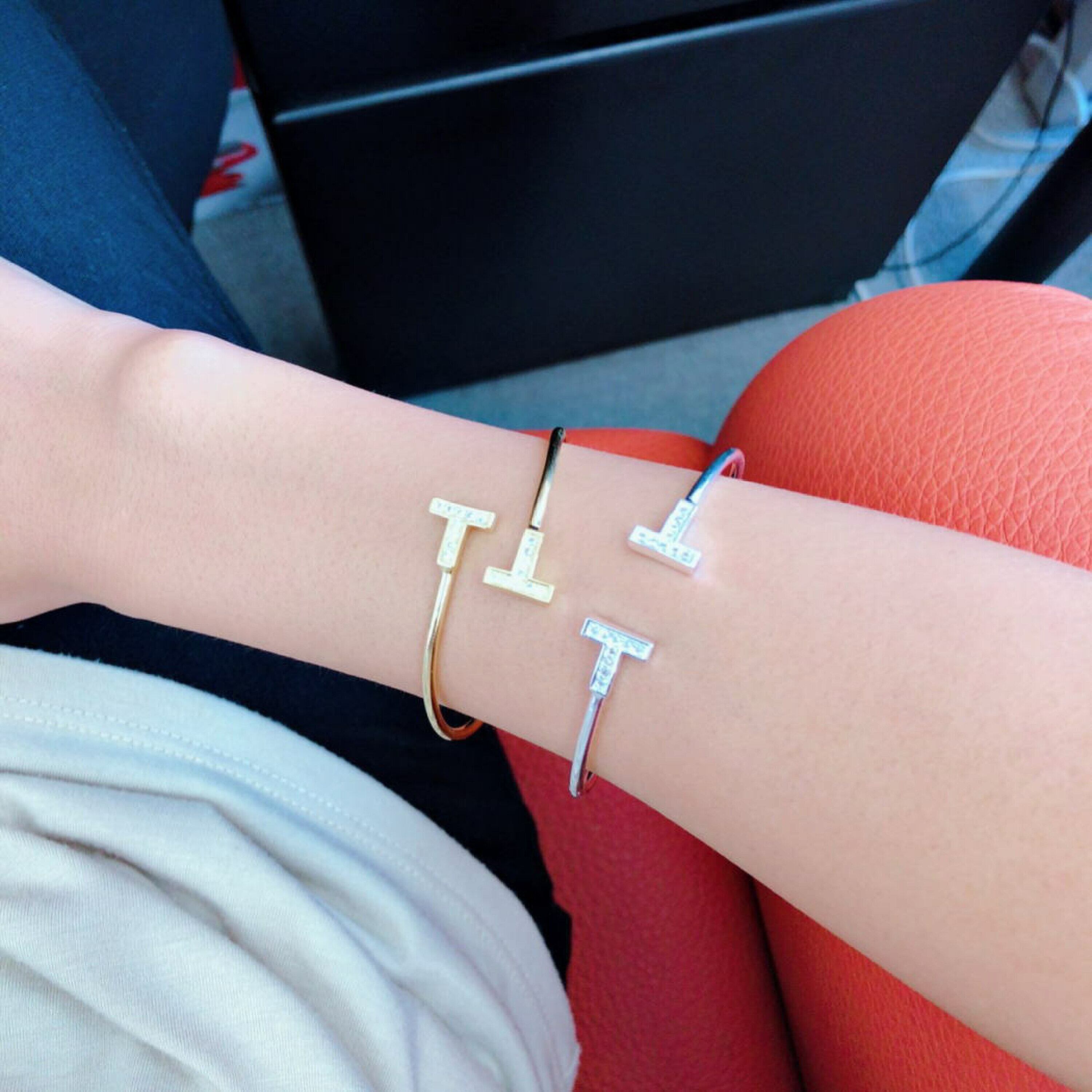 Crystal T bangle gold